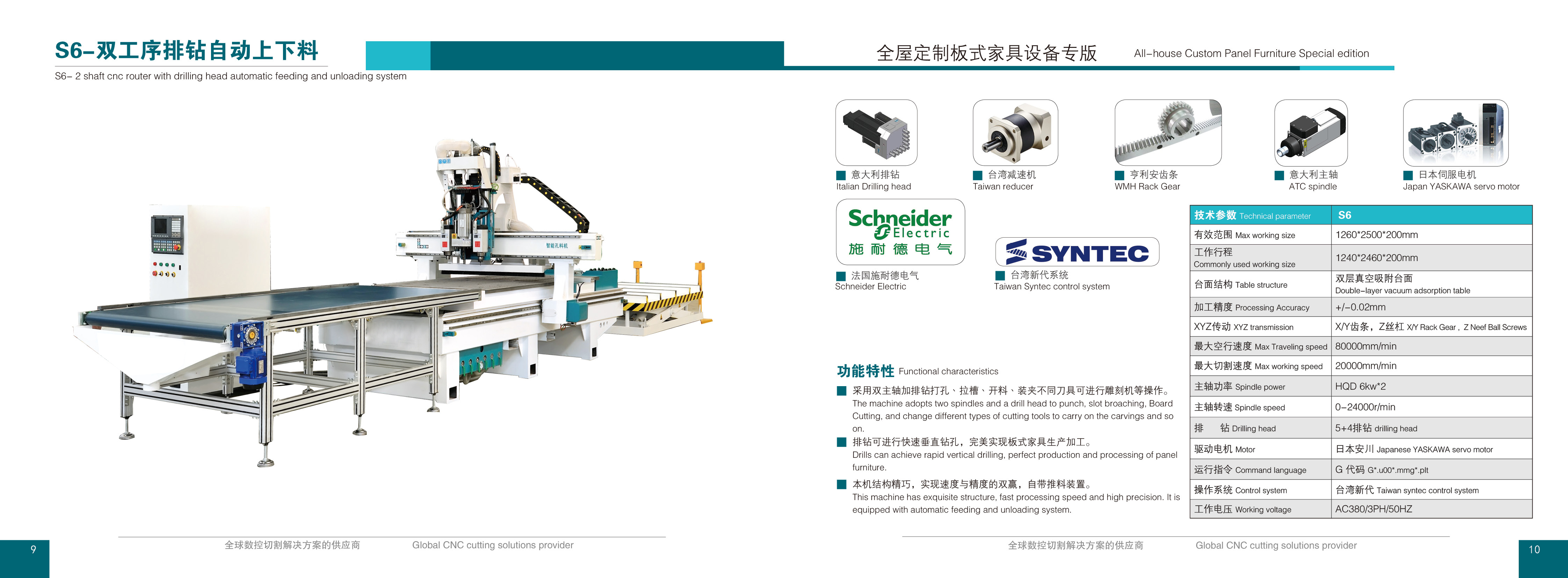 創新的設計及高精度的制造,使機床的性能比以前提高50%,高強度的鋼性結構。 2、三軸原裝進口導軌,絲杠,伺服電機,速度快效率高,是普通機器的3-5倍。 3、高速度變頻水冷主軸,配工業冷水機,扭矩大,轉速高,加工效率高,使用壽命長